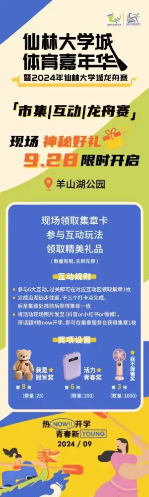 9月28日!玩法攻略!先到先得!带你玩转仙林大学城体育嘉年华暨2024年仙林大学城龙舟赛!
