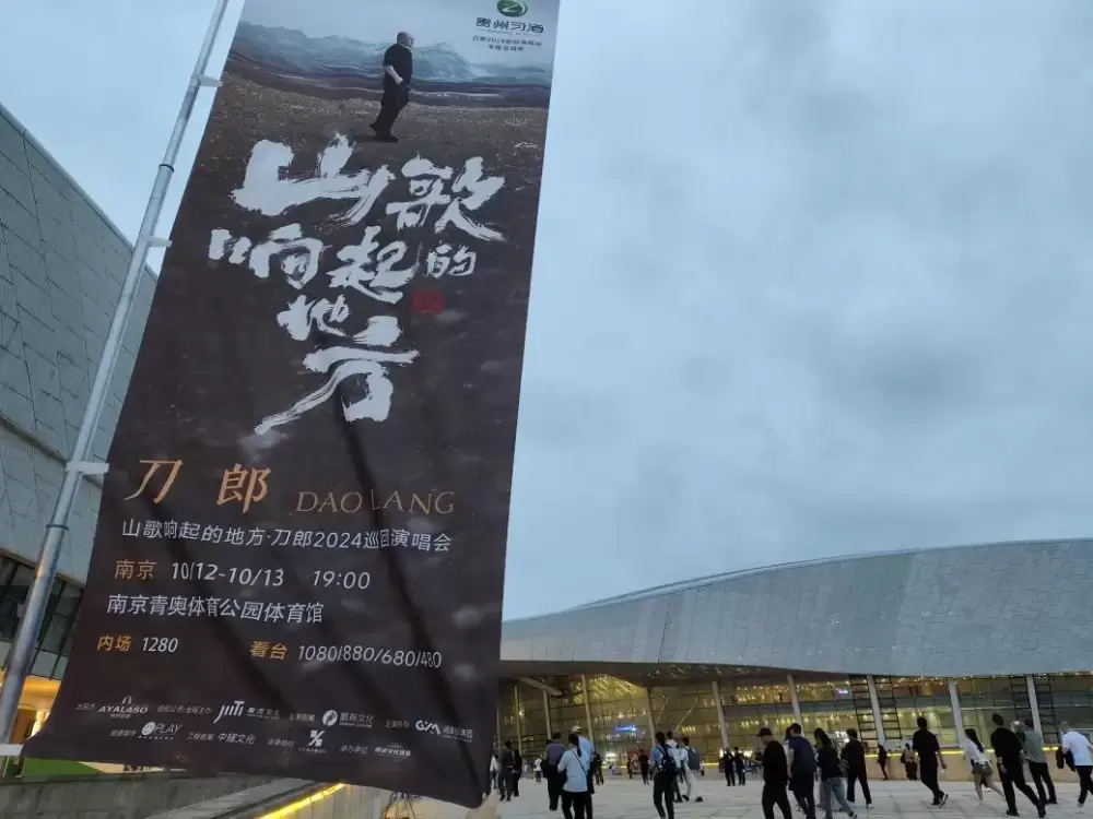 10月12日-13日,山歌响起的地方·刀郎2024巡回演唱会—南京站在南京青奥体育公园梦之蓝体育馆圆满举办,体育场馆附近商场大屏播放着“宁好!刀郎”,这是具有南京特色的问候和祝愿;全城还有许多热门景区、商圈张灯结彩,充满刀郎元素。“刀迷”从全国各地来到南京聚会,变身“野生UP主”,在手机镜头前合唱起刀郎歌曲,也直播着南京的风土人情。