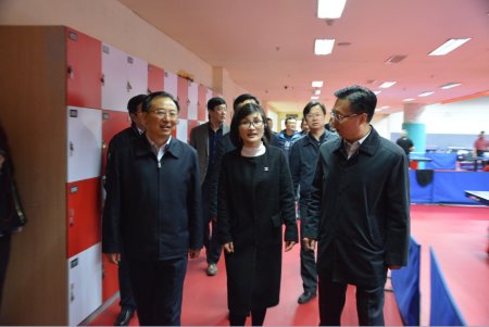 2017-04-13 12 0182017年4月10日,省委副书记、市委书记吴政隆在调研南京卫生与健康工作时专门把南京全民健身中心作为考察行程重点一站,他要求体育产业集团加强载体建设,提升运营服务水平,吸引越来越多的人热爱运动、追求健康,不断提升生命质量和幸福指数。市领导杨学鹏、胡万进参加调研,市体育局陈卫红局长、产业集团董事长章小奇、总经理程向阳陪同调研。