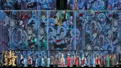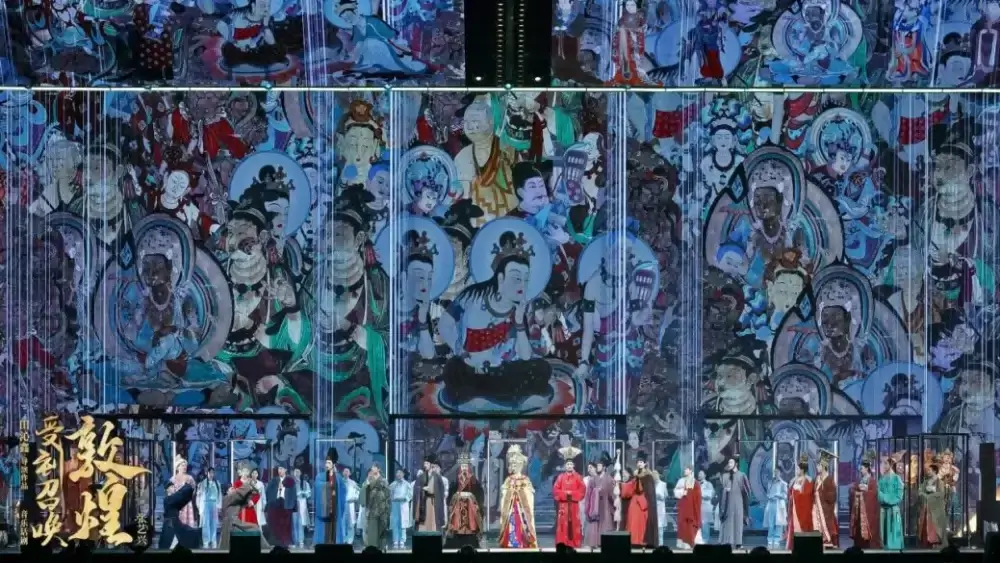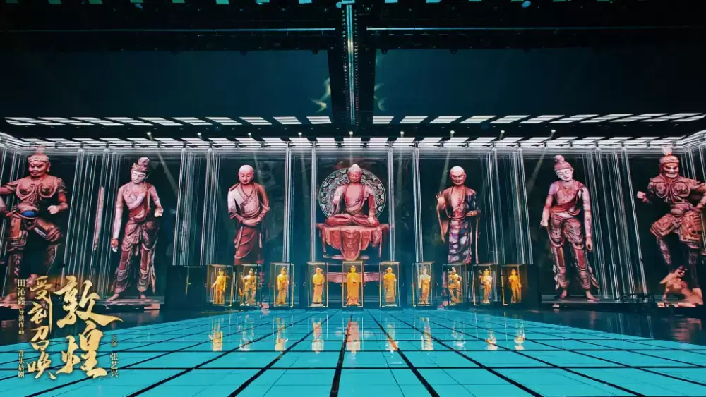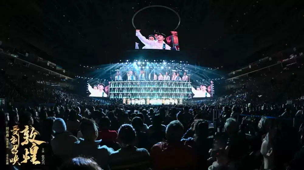 《受到召唤·敦煌》以“戏剧艺术+数字科技”的创新形式,打造沉浸式文化大片。7路威亚演绎飞天群像,光影裂隙中重现“群集龛顶,望之云表”的盛景;超清数字影音技术、流媒体传输工程,让莫高窟壁画“跃”出千年尘埃。15首原创歌曲横跨古典、流行、吟唱,金培达作曲的《渭城曲》《叩问》直击心灵,张艺兴领衔的歌舞戏剧无缝衔接,戏剧张力与艺术融合,打造身临其境的震撼视听。