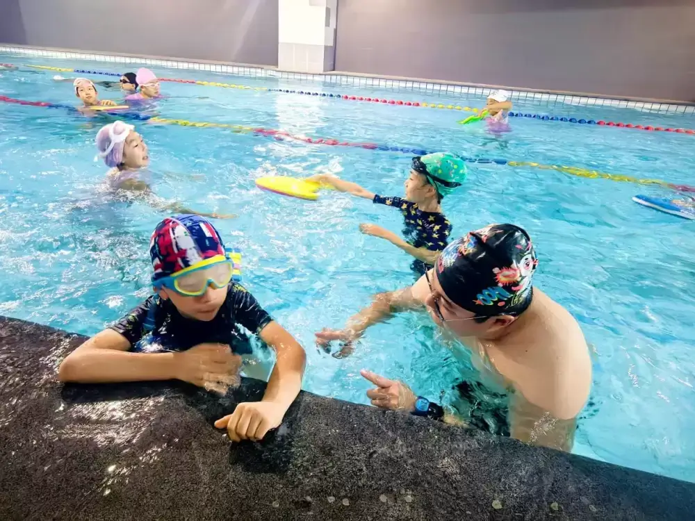 热身结束,孩子们换上泳衣、戴上泳帽和泳镜;泳池边,王晶、陈逸飞、朱文嘉三位教练早早准备就绪。“今天我们要学三个技能,一是抽筋时如何漂浮,二是被异物缠绕如何解脱,三是同伴落水如何智慧救援……”三位教练在水中带来了精彩的防溺水自救小技能教学,他们“手把手”地进行生动示范,极大地激发了孩子们的学习兴趣。在教练的鼓励和指导下,孩子们勇敢地踏入水中,亲身体验防溺水自救技能的实际操作,提升了自身的自救能力。