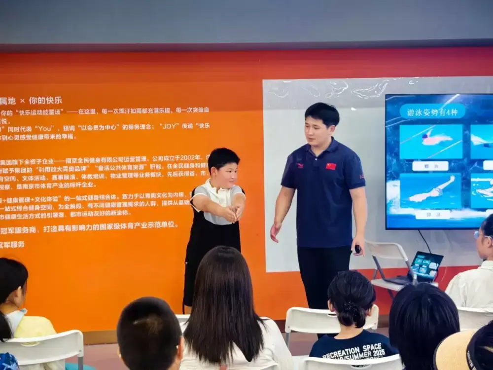 2025-08-8 1 1038月8日,正值“第17个全民健身日”之际,一场以“青春自护 平安暑期”为主题的青少年防溺实境公益课堂活动,在全民公司旗下青奥U JOY玉桥游泳馆热闹开展。本次活动由共青团江苏省委指导、共青团南京市委主办,江苏·南京12355青少年服务台等单位联合承办、全民公司协办,吸引了近30组家庭参与。通过“知识宣讲+体能训练+水中实践”的沉浸式模式,让孩子们在“学、练、做”中掌握安全自护核心技能,为青少年的暑期安全增添一份坚实保障。