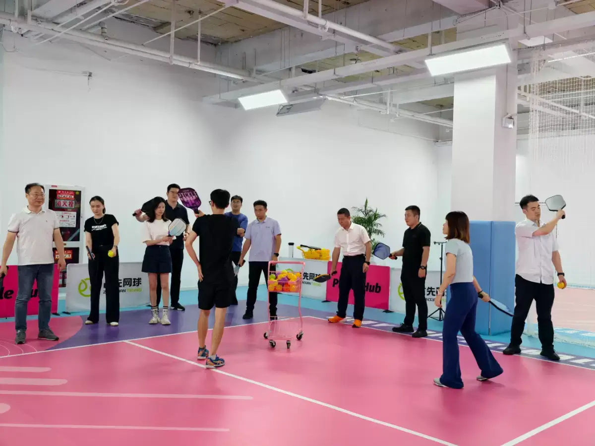 活动最后,与会人员共同体验了新潮的匹克球运动。多巴胺配色的青奥匹克球中心里充满青春气息和快乐因子,在专业教练的指导下,大家很快掌握了基本技巧和规则,并在轻松愉快的氛围中进行了实战练习。匹克球这项新兴运动以其易上手、趣味性强等特点,获得了参与者的一致好评。