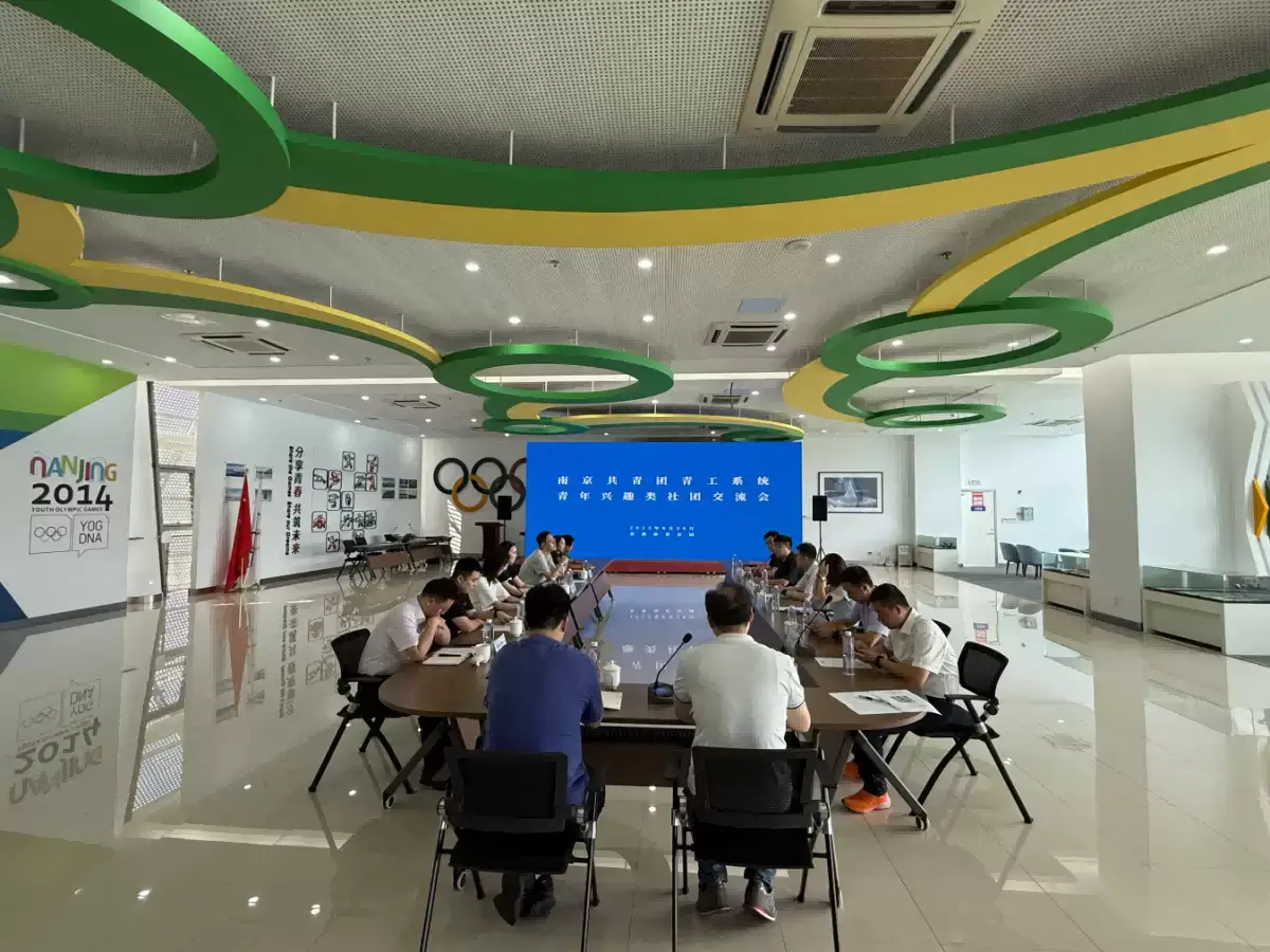 在随后的交流座谈会上,体育集团团委首先分享了联动青工系统青年兴趣类社团活动的初步设想;集团品拓部副主管、江苏省飞盘运动推广委员会副主任江岳作为青年代表从专业角度就飞盘社群打造经验及对青年运动文化的推动进行了详细阐述;青奥产业南京有限公司的运营团队则围绕“热力青奥场馆承办青年活动的探索与思考”分享了青奥潮玩和运动场馆的运营经验和精品项目。