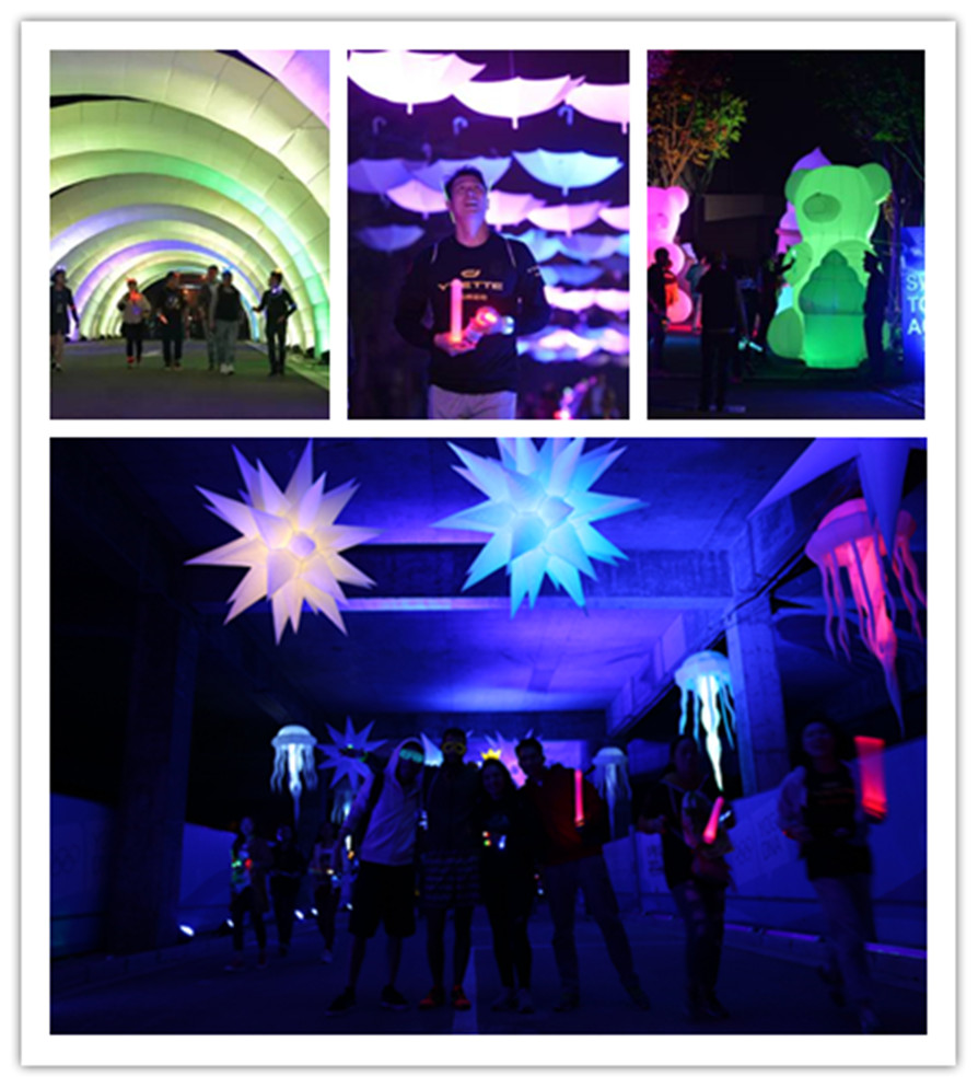 本次活动在南京青奥体育公园举办,被炫目的大型荧光装置照亮的跑道在夜色中酷似仙境,国内外知名DJ打造的音乐激情四射,近万名爱好跑步、喜欢音乐、追逐潮流的年轻人,汇聚在5公里的跑道上,尽享电音荧光夜跑的魅力。Selina任家萱、郑元畅、辰亦儒、周定纬组成的明星领跑团的高台领跑和现场表演,也为现场观众带来一场视听盛宴。这样一场跑步活动集合了初秋凉夜、荧光潮装、酷炫电音、荧河跑道于一体,无论是追逐潮流乐享青春,还是感受古城漫步重温历史,都将给现场的观众留下最特别的回忆。