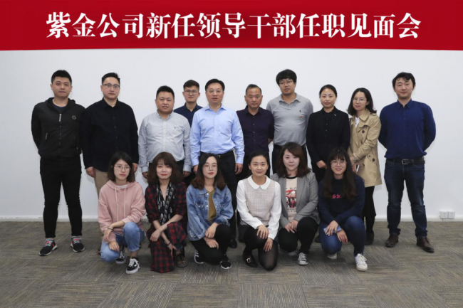 2019-04-10 6 0064月9日上午,紫金公司总经理履职见面会在紫金公司会议室召开。会议由集团副总经理王鹏主持,集团党委书记、董事长章小奇,集团副总经济师、紫金体育公司董事长周培源、集团相关部门及紫金公司全体人员参会。