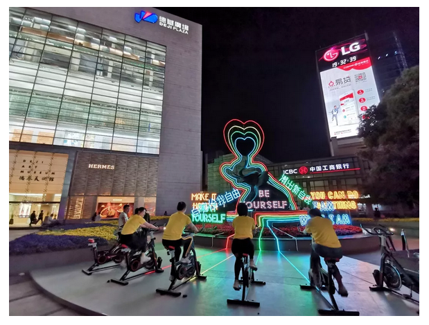 醒目的光电slogan彰显了酷潮的年轻主张,
