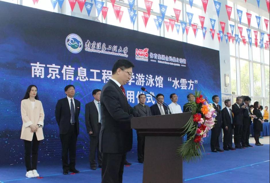 中国气象局科技与气候变化司司长于玉斌、南京信息工程大学党委书记管兆勇、南京信息工程大学李北群校长、南京市国资委副巡视员王开平、南京市体育产业集团章小奇董事长、南京市体育局体育产业管理处副调研员庞云洲、南京江北新区文化体育发展中心副主任赵伟伟等领导和嘉宾出席游泳馆启用仪式。
