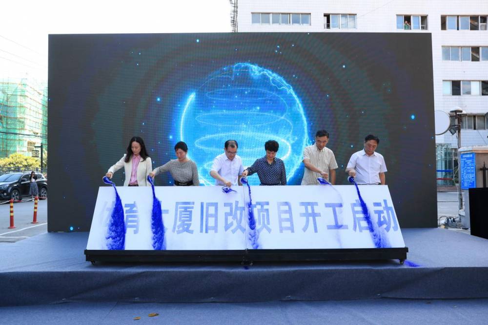 在倒计时声中,领导嘉宾手持流沙容器,将流沙缓缓撒向启动台。一行清晰的“体育大厦旧改项目开工启动”慢慢显现,标志着体育大厦旧改项目正式开工。