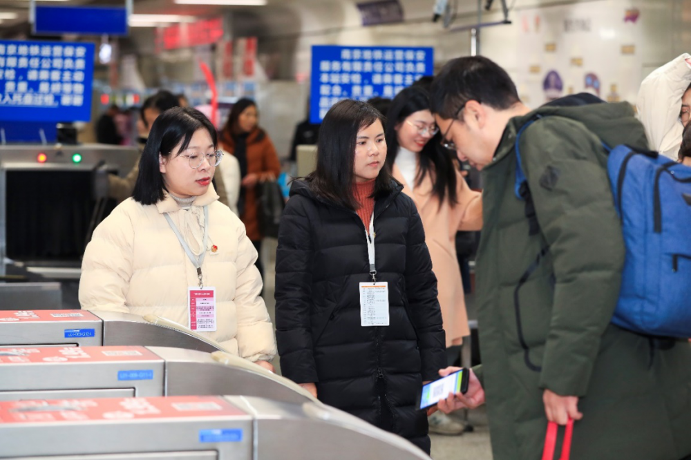 2019-12-27 6 654“您要到新百,请从8号口出站。”“您可以在自动售票机上购票,如果您有支付宝也可以用乘车码乘车。”这是12月24日下午,紫金公司的党员、团员在新街口地铁站为乘客提供志愿者服务的场景。