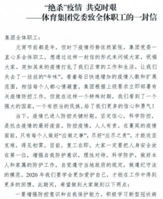 疫情防控·文明单位在行动:捐款献初心,互助抗疫情,体育集团“疫”不容辞!