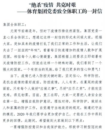 体育集团:抓好疫情防控第一线