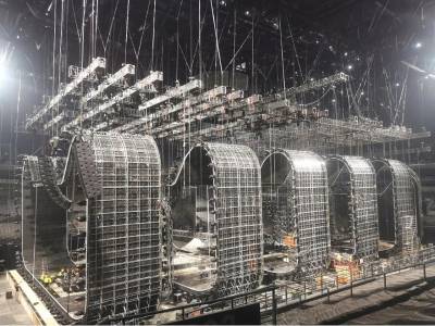 在“天猫618超级晚”活动中,青奥体育馆吊挂总重量达126.5吨(一般商演鲜有吊重超过100吨),共256个吊点,其中单个吊点最重达658公斤,而地面荷载超50吨。在以往场馆承接的活动中,作为亮点活动之一的烎·2019潮音发布夜,当时其舞台搭建吊挂总重100吨已是罕见,而本次活动吊重126.5吨,不仅创了青奥体育馆的记录,在国内所有场馆中也达到了屈指可数的水平。![]()