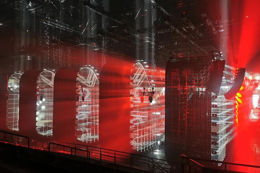 在“天猫618超级晚”活动中,青奥体育馆吊挂总重量达126.5吨(一般商演鲜有吊重超过100吨),共256个吊点,其中单个吊点最重达658公斤,而地面荷载超50吨。在以往场馆承接的活动中,作为亮点活动之一的烎·2019潮音发布夜,当时其舞台搭建吊挂总重100吨已是罕见,而本次活动吊重126.5吨,不仅创了青奥体育馆的记录,在国内所有场馆中也达到了屈指可数的水平。