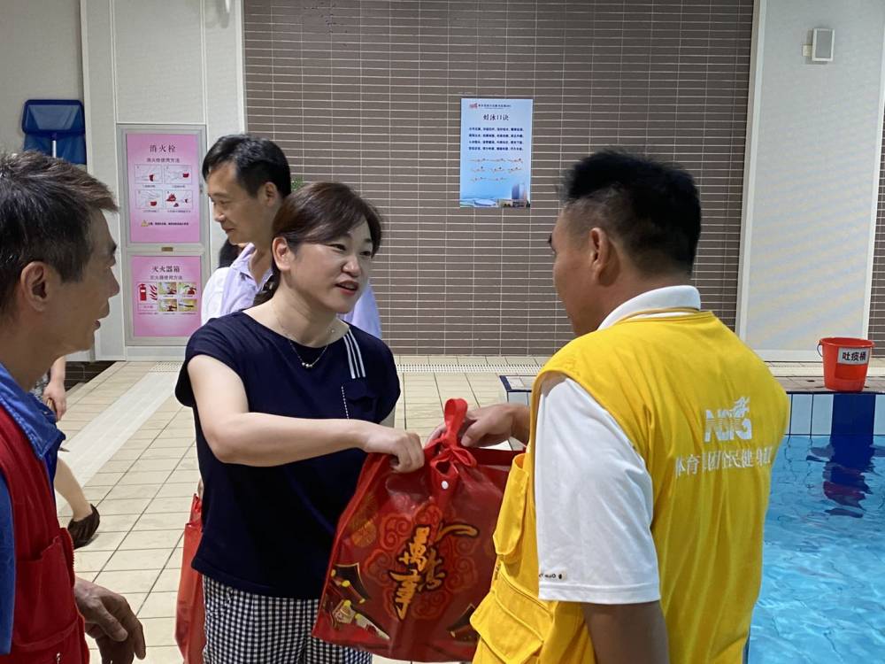 集团总经理、党委副书记程向阳,党委副书记王虹燕,总会计师王璎一行利用一天半时间,先后赴南京国际网球中心、南京全民健身中心、鼓楼体育中心、河西外校游泳馆以及好街坊商业中心全民健身蹦床乐园,检查各场馆安全运营管理工作,同时也向克服酷暑天气、坚守工作岗位的基层一线员工表示感谢和慰问,为他们送上沐浴露等防暑降温物品。集团领导详细询问坚守一线的员工工作情况,叮嘱员工们在高温天气下完成工作任务的同时,也要做好防暑降温工作,确保身体状况良好。