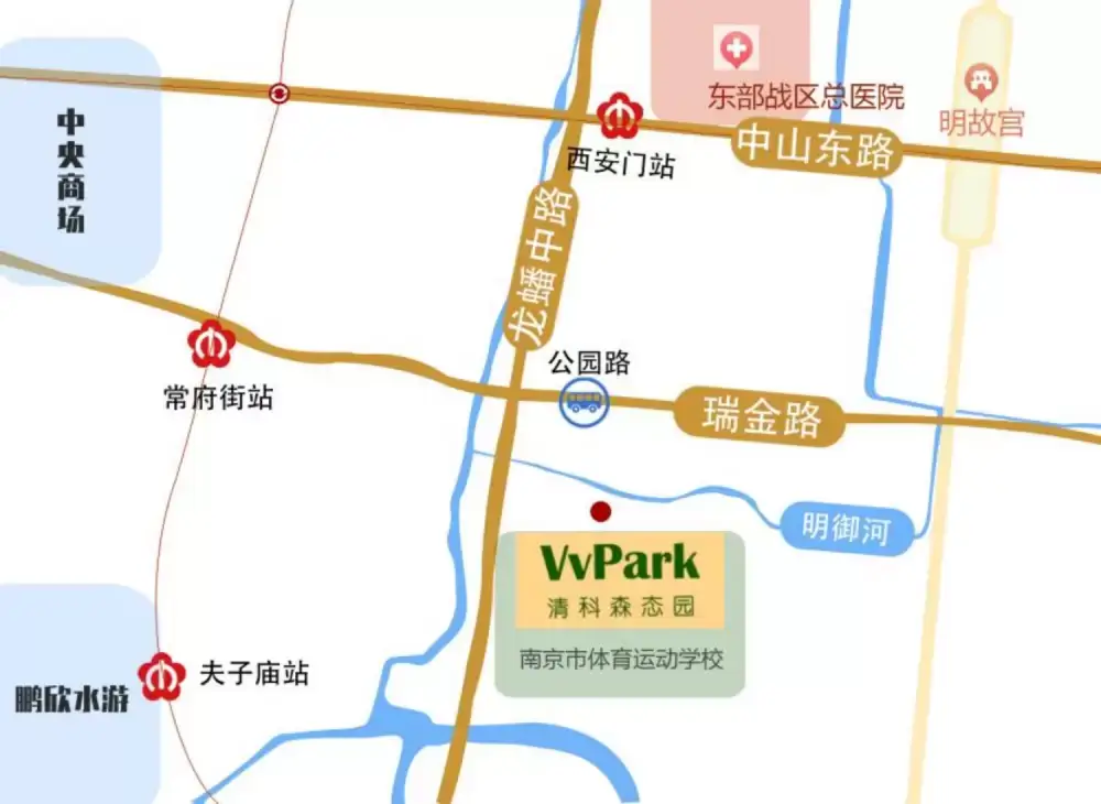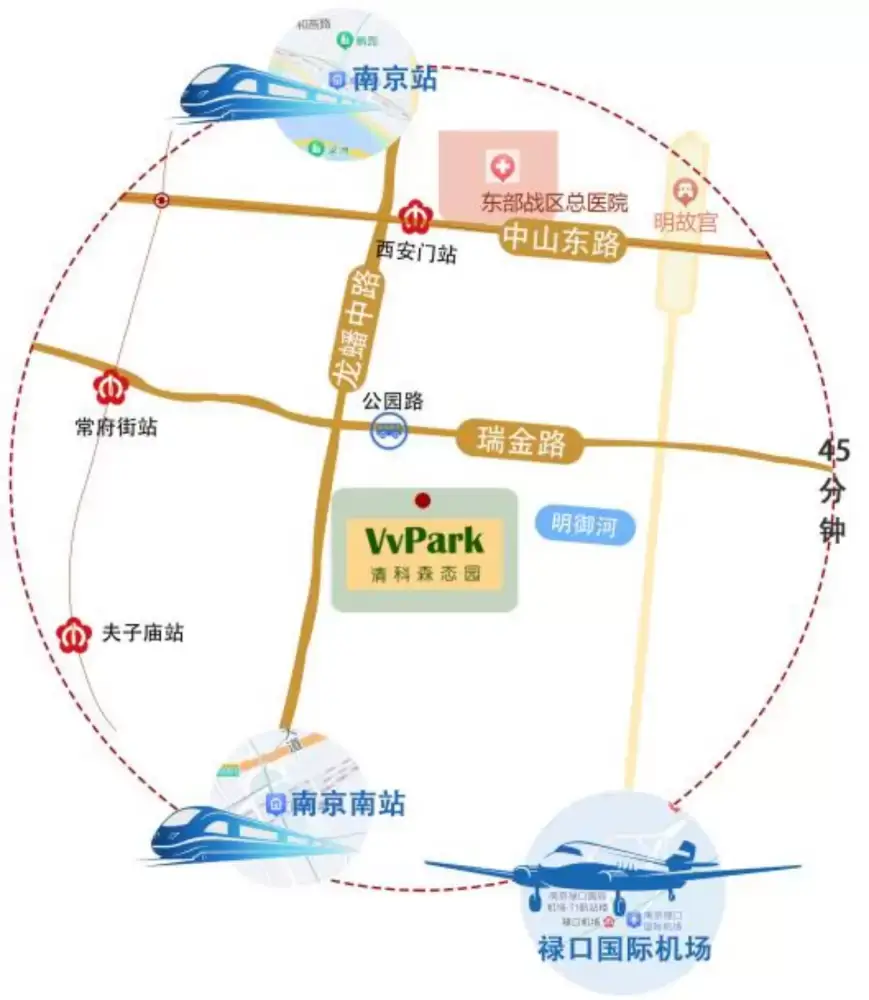 体育大厦-青奥森态园位于秦淮区公园路42号,地处秦淮核心区,依紫金山之势,汇古秦淮气韵。园区紧邻龙蟠中路主干道,3条地铁线路环伺,2号线西安门站、3号线常府街站步行直达,汇集多条高速公路,距南京站、南京南站20分钟车程,距南京禄口国际机场40公里,交通通达。周边商圈云集,新街口商业区、德基商圈、星级酒店、东部战区医院、南京博物院等均在1公里内,配套成熟,商务环境十分优越。