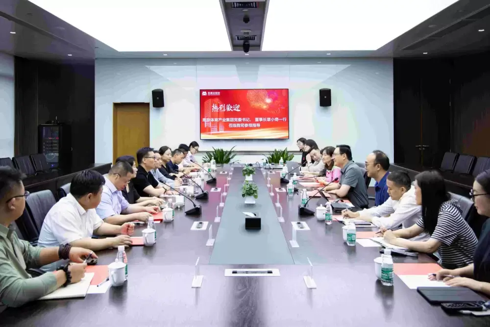 2023-07-6 8 6367月4日,为进一步延伸南京体育产业生态价值链,探寻集团业务发展的新增长点,集团董事长章小奇带队赴苏美达轻纺考察交流。